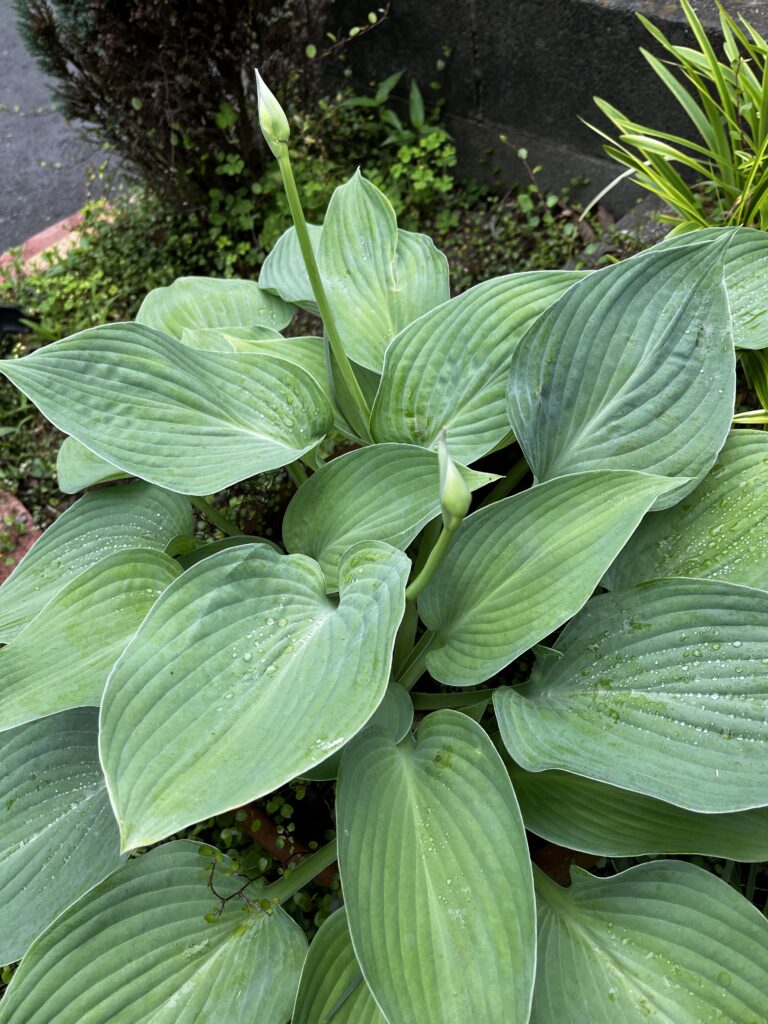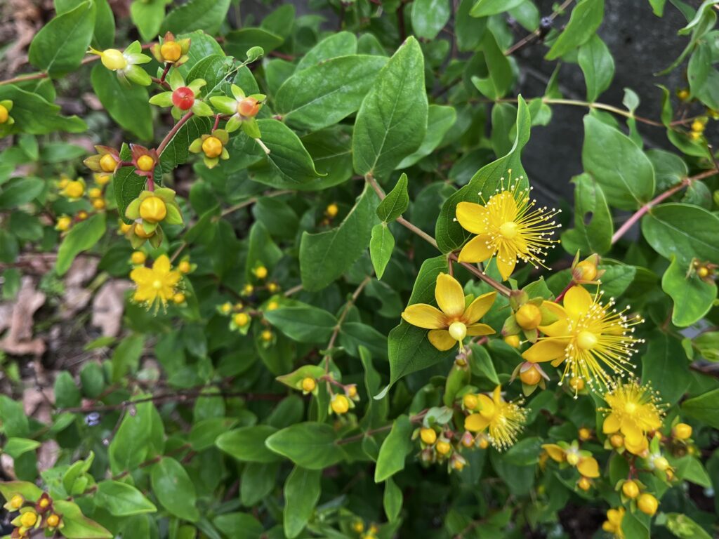 ヒペリカムの黄色い花を見ていると明るい気持ちになるし、ギボウシの美しい葉っぱも大好きだ。蕾がふくらんできたから、もう少しで花が咲きそう。