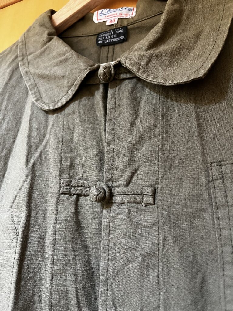 きのうのハイライトは、何軒目かの古着屋さんで、ずっと気になっていたフレンチチャイナジャケットを2つも発見し、18歳と大興奮したこと。チャイナボタンのシャツを作るために実物を手元に置いておきたいわたしと、ちょうどよいサイズのフレンチチャイナジャケットを探していた18歳のニーズがバチッと合った瞬間だった。研究費として少し援助するかわりに好きなだけ作りを確認してよいという条件で話がまとまり、18歳がオリーブ色のほうを購入した。